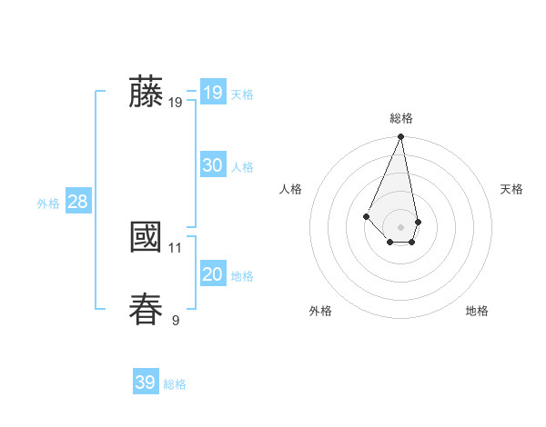 藤 國春さんの総格は39画の5点!