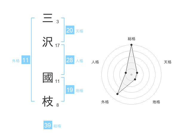 三沢 國枝さんを姓名の画数から五運を鑑定