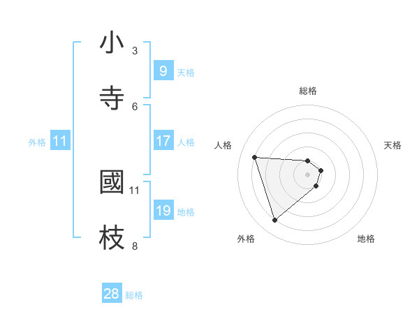 小寺 國枝さんを姓名の画数から五運を鑑定