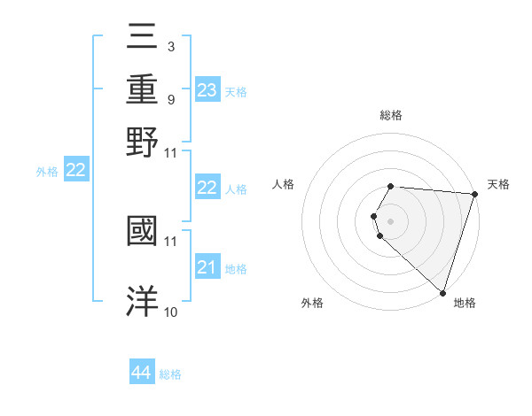 三重野 國洋さんを姓名の画数から五運を鑑定