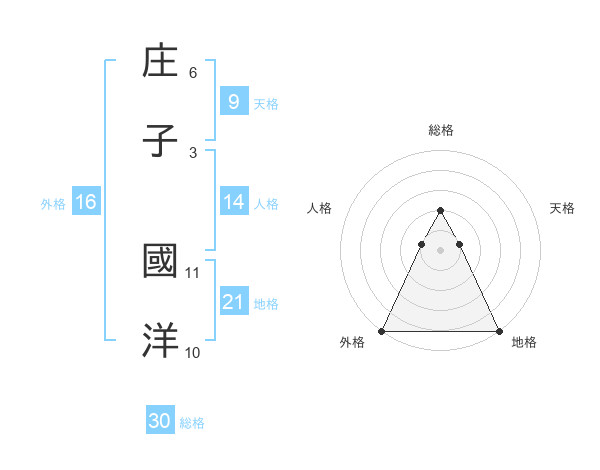 庄子 國洋さんを姓名の画数から五運を鑑定