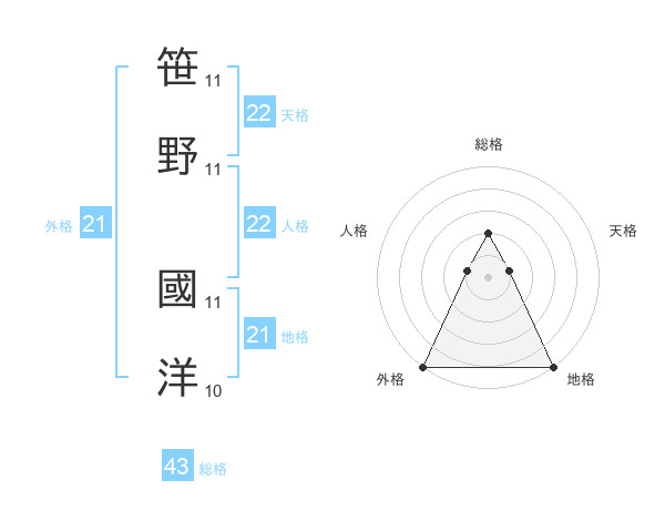 笹野 國洋さんの天格は22画の1点!