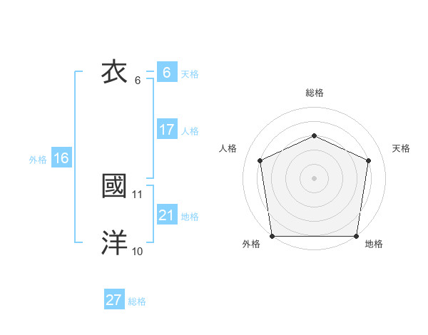 衣 國洋さんの総格は27画の3点!