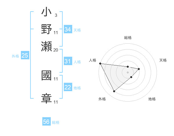 小野瀬 國章さんを姓名の画数から五運を鑑定