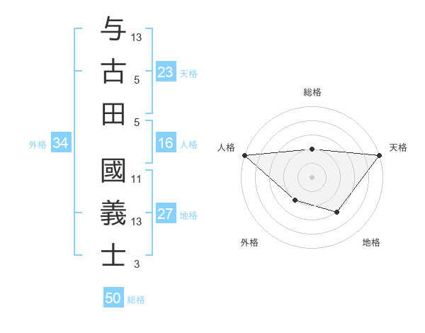 与古田 國義士さんの総格は50画の2点!