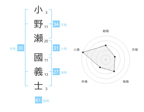 小野瀬 國義士さんを姓名の画数から五運を鑑定