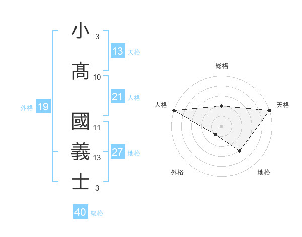 小髙 國義士さんを姓名の画数から五運を鑑定
