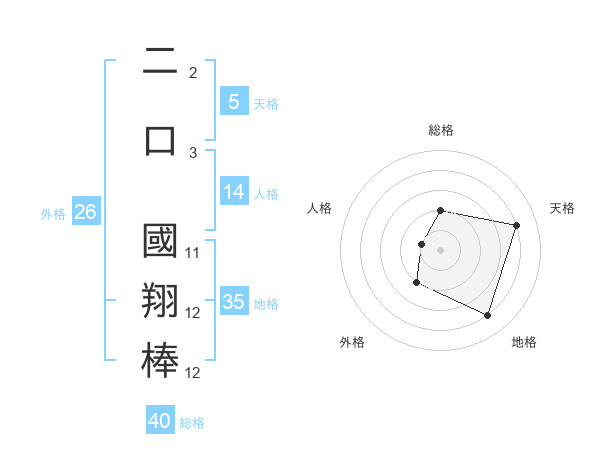 二口 國翔棒さんを姓名の画数から五運を鑑定