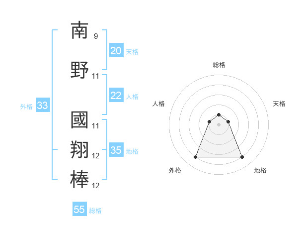 南野 國翔棒さんの外格は33画の4点!