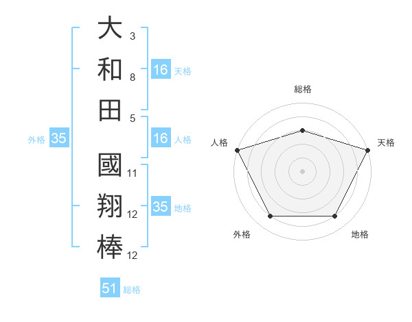 大和田 國翔棒さんを姓名の画数から五運を鑑定