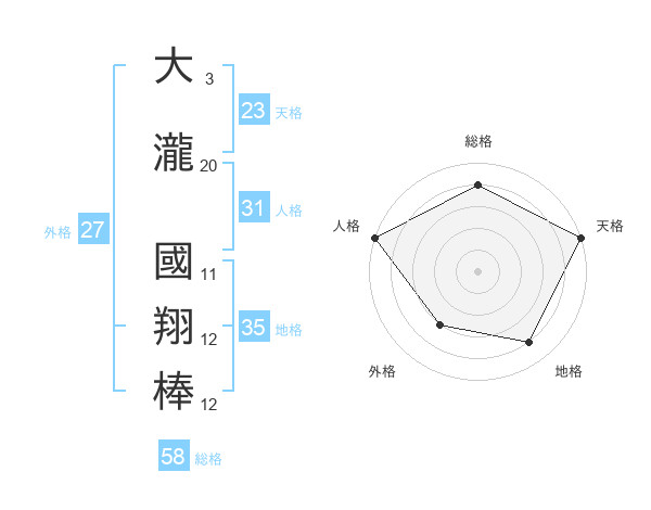 大瀧 國翔棒さんを姓名の画数から五運を鑑定