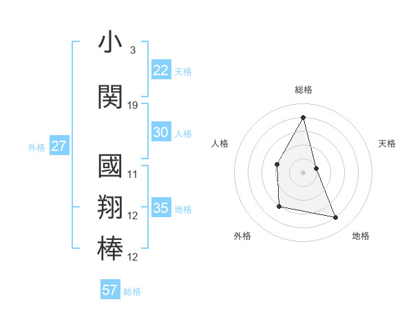 小関 國翔棒さんを姓名の画数から五運を鑑定