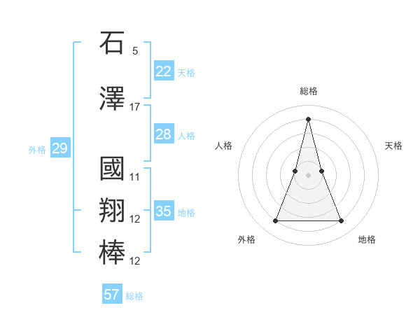 石澤 國翔棒さんの総格は57画の4点!