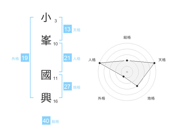 小峯 國興さんの天格は13画の5点!