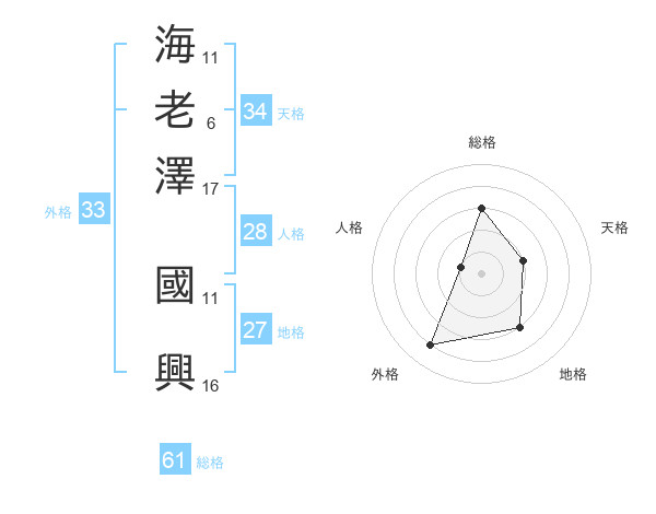 海老澤 國興さんの総格は61画の3点!