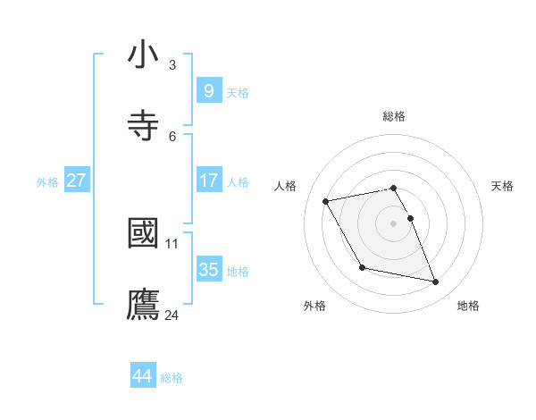 小寺 國鷹さんの総格は44画の2点!