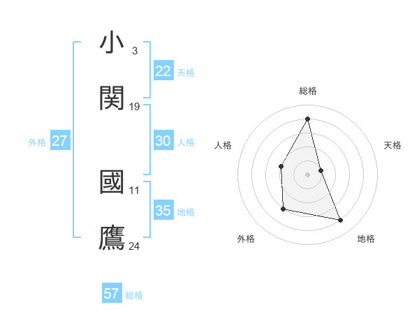 小関 國鷹さんを姓名の画数から五運を鑑定
