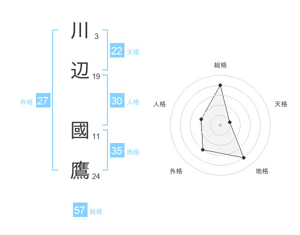 川辺 國鷹さんを姓名の画数から五運を鑑定