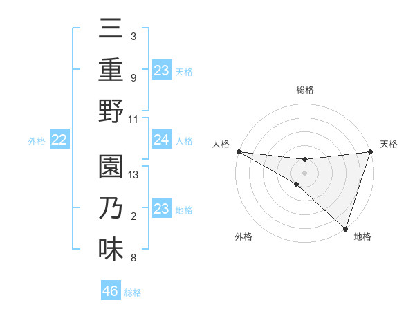 三重野 園乃味さんを姓名の画数から五運を鑑定