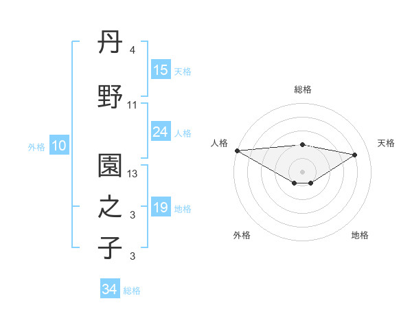 丹野 園之子さんを姓名の画数から五運を鑑定