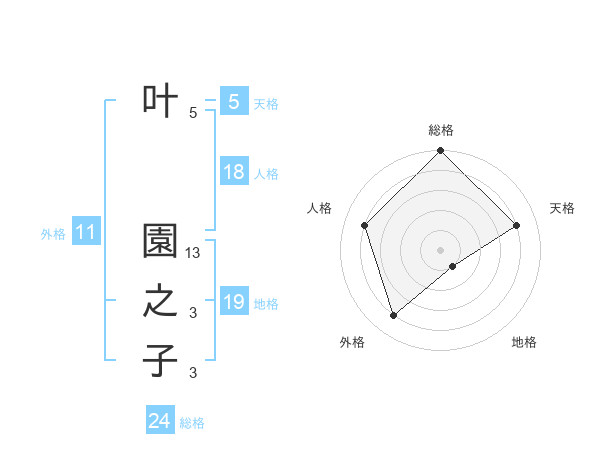 叶 園之子さんの天格は5画の4点!