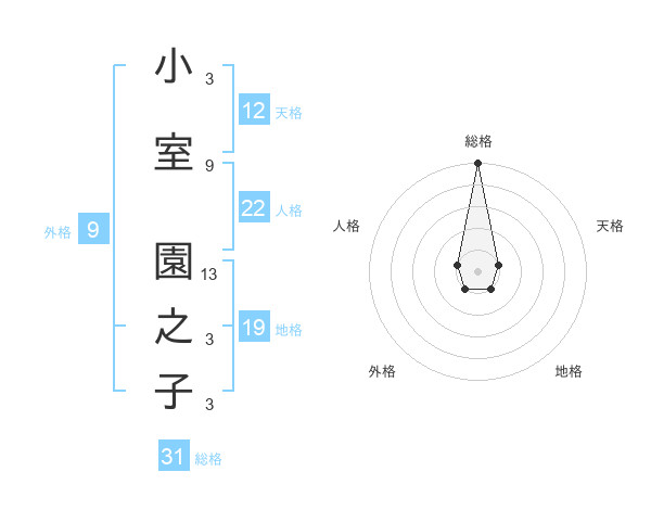 小室 園之子さんの人格は22画の1点!