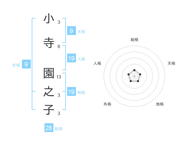 小寺 園之子さんの総格は28画の1点!