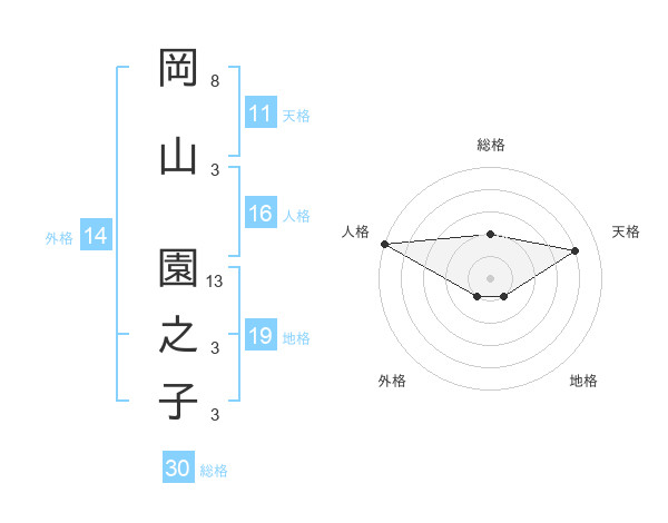 岡山 園之子さんを姓名の画数から五運を鑑定