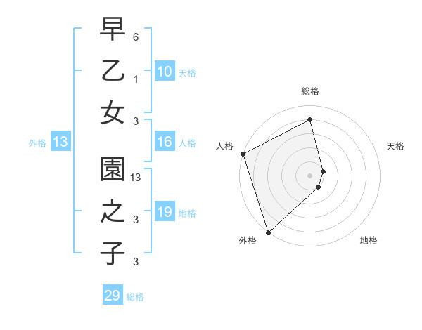 早乙女 園之子さんを姓名の画数から五運を鑑定
