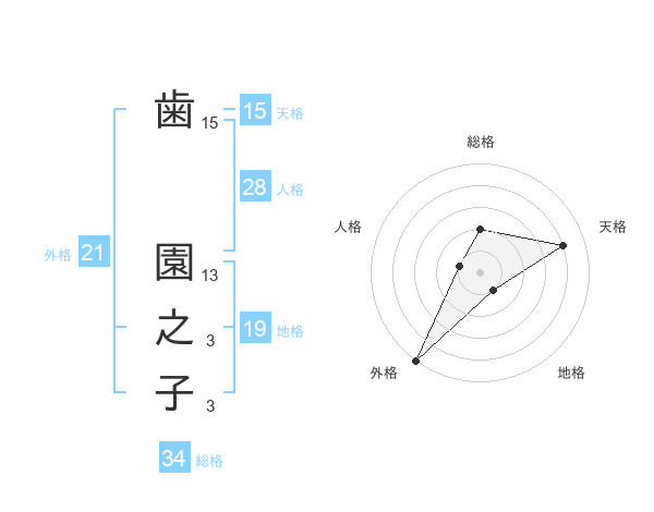 歯 園之子さんの外格は21画の5点!