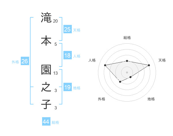 滝本 園之子さんの地格は19画の1点!