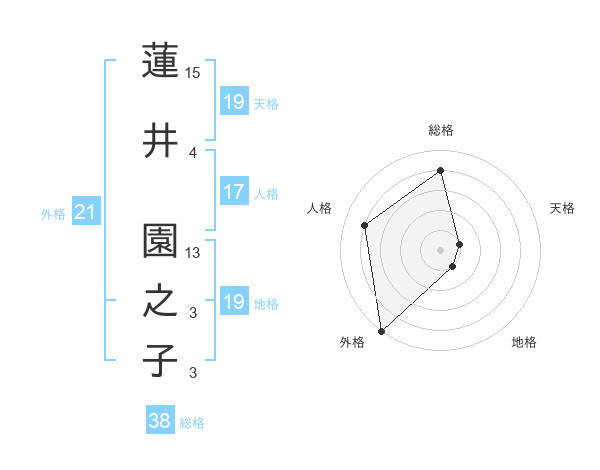 蓮井 園之子さんを姓名の画数から五運を鑑定