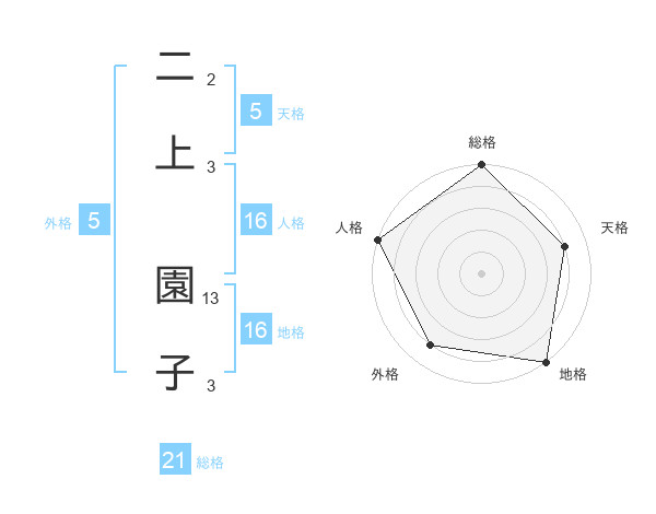 二上 園子さんの地格は16画の5点!