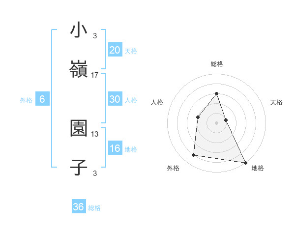 小嶺 園子さんを姓名の画数から五運を鑑定