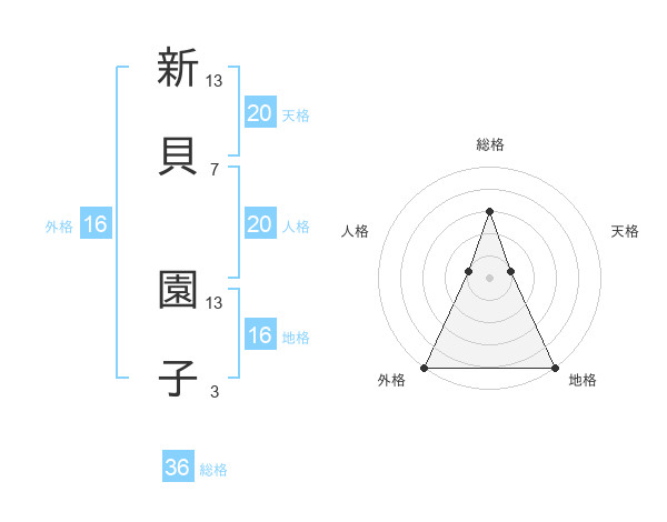 新貝 園子さんの天格は20画の1点!