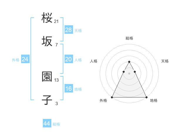 桜坂 園子さんの総格は44画の2点!