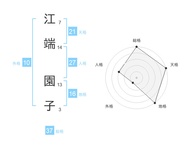 江端 園子さんの総格は37画の5点!