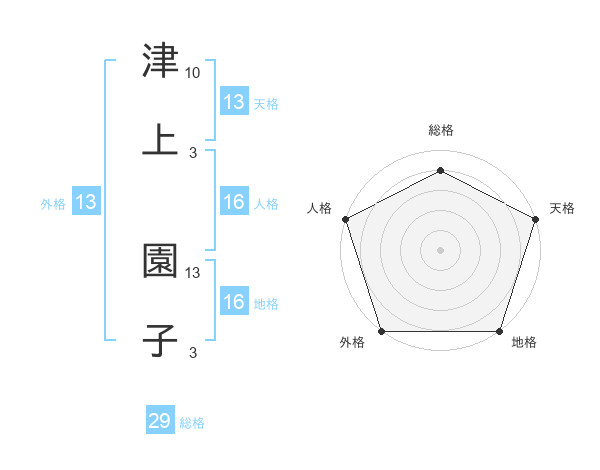 津上 園子さんの総格は29画の4点!