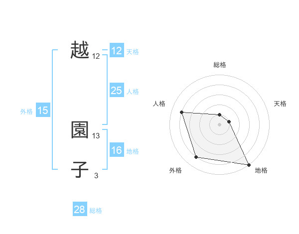 越 園子さんの総格は28画の1点!