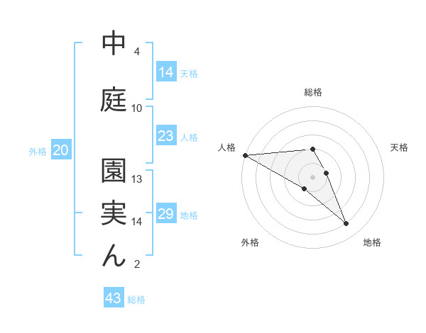 中庭 園実んさんの総格は43画の2点!
