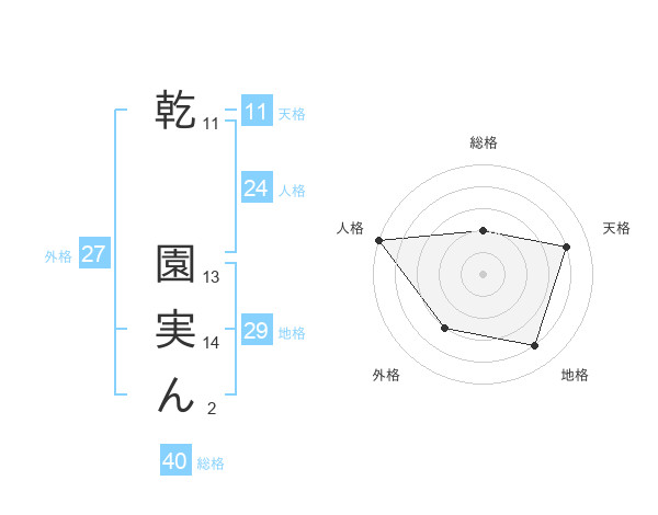 乾 園実んさんの総格は40画の2点!