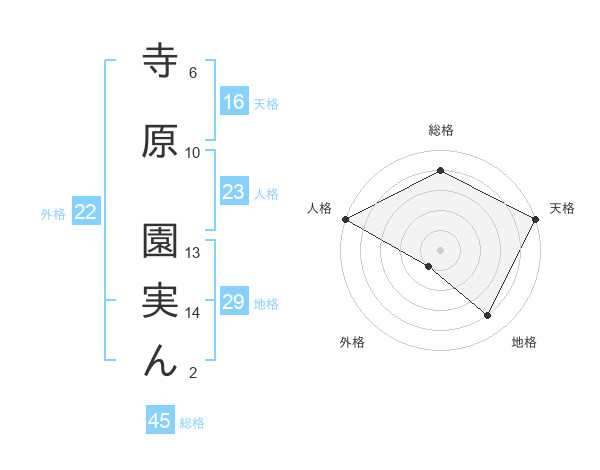 寺原 園実んさんを姓名の画数から五運を鑑定