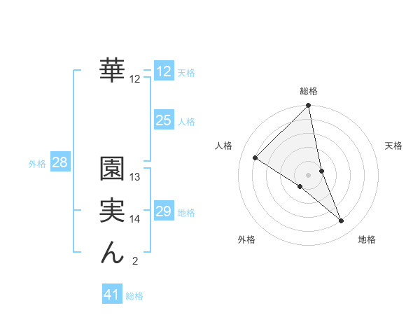 華 園実んさんの総格は41画の5点!