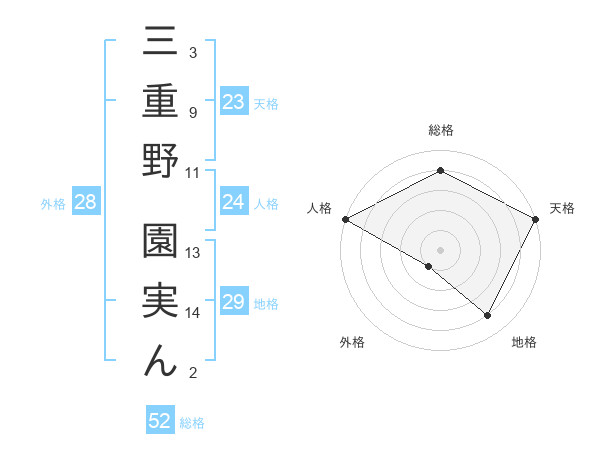 三重野 園実んさんを姓名の画数から五運を鑑定