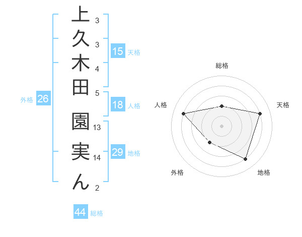 上久木田 園実んさんを姓名の画数から五運を鑑定