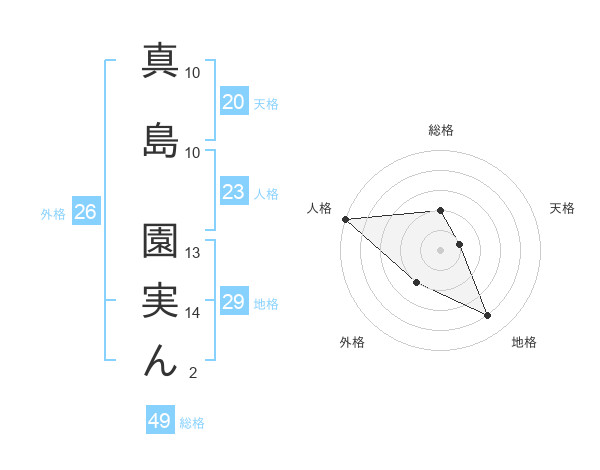 真島 園実んさんの総格は49画の2点!
