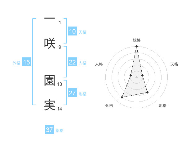 一咲 園実さんの総格は37画の5点!