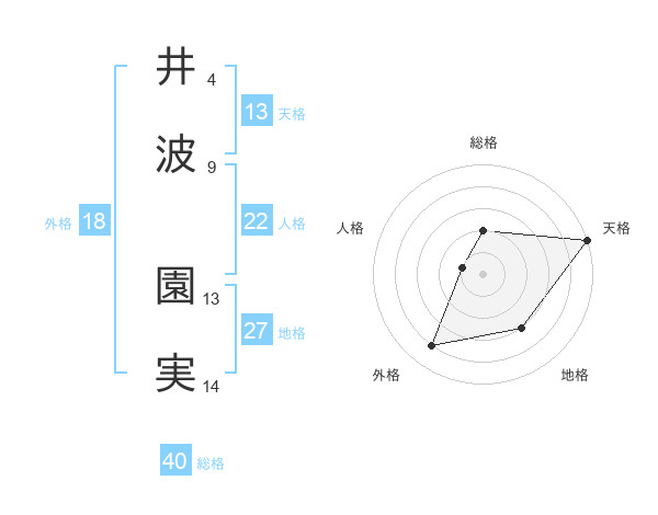 井波 園実さんの天格は13画の5点!
