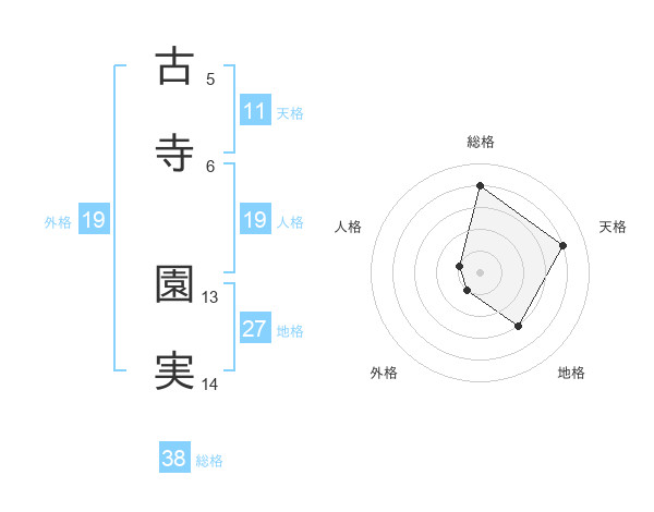 古寺 園実さんの総格は38画の4点!