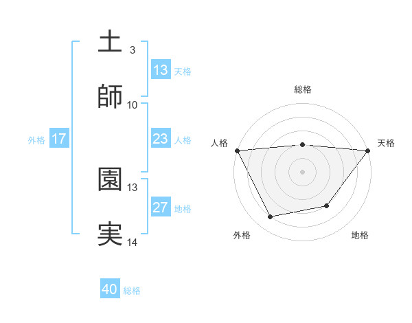 土師 園実さんの天格は13画の5点!